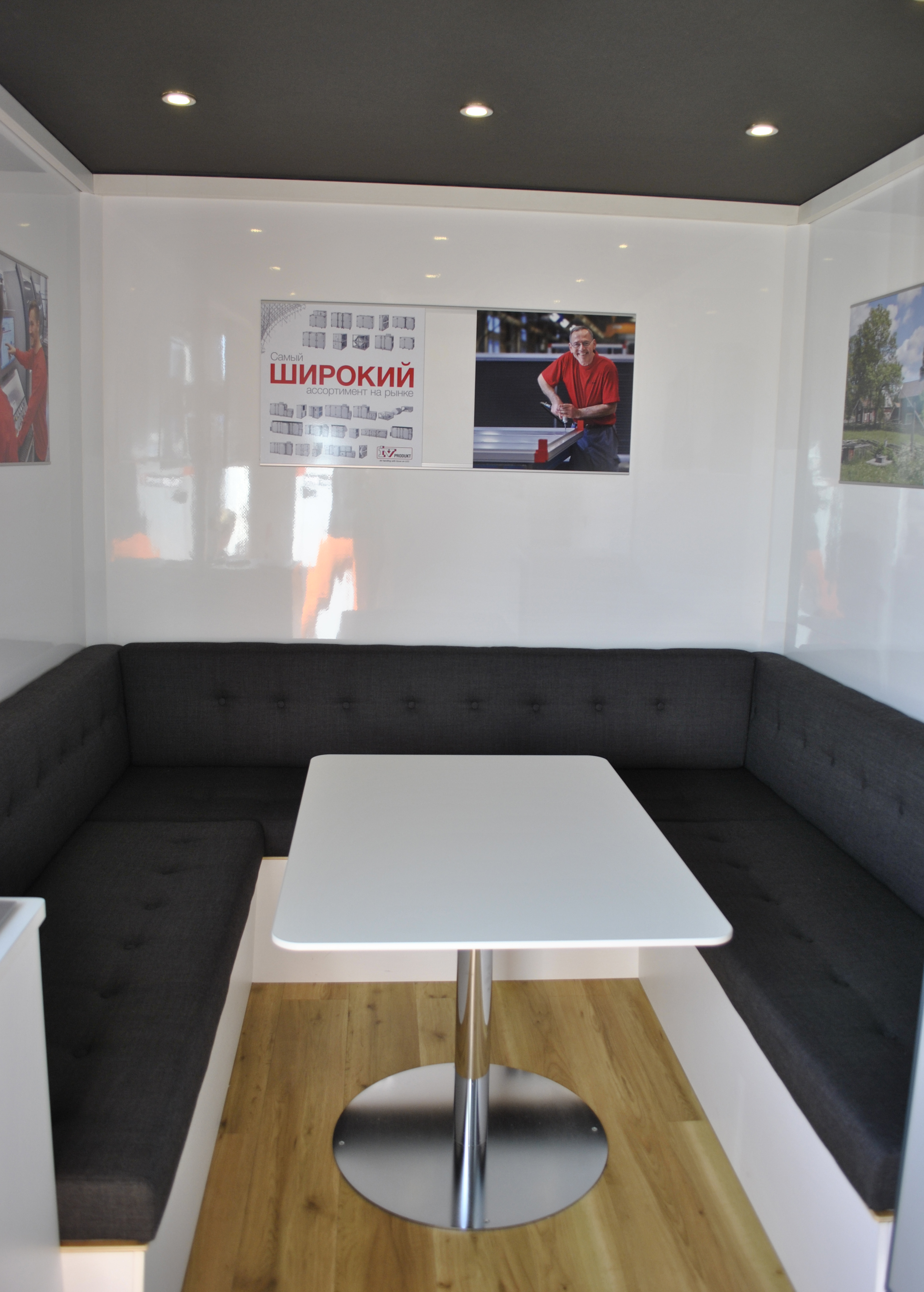 Helintegrerad husbil med fyra separata snurrstolar