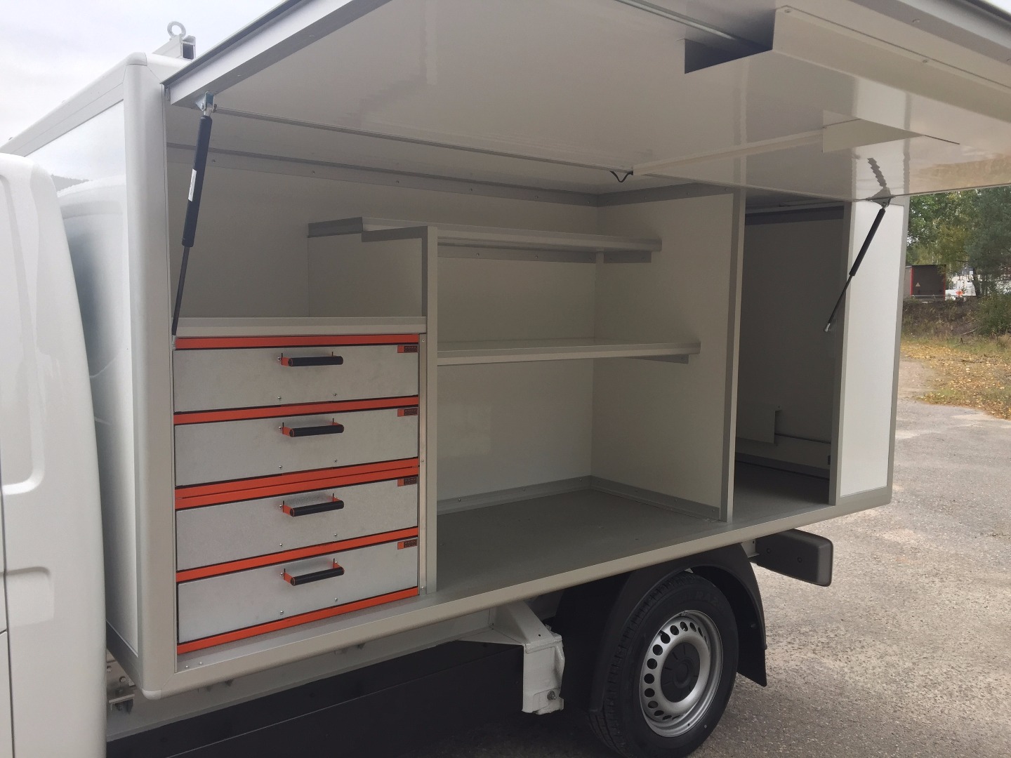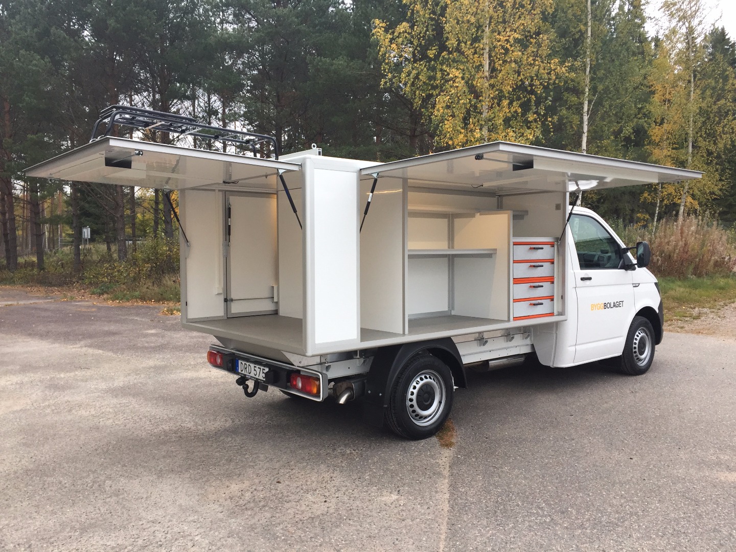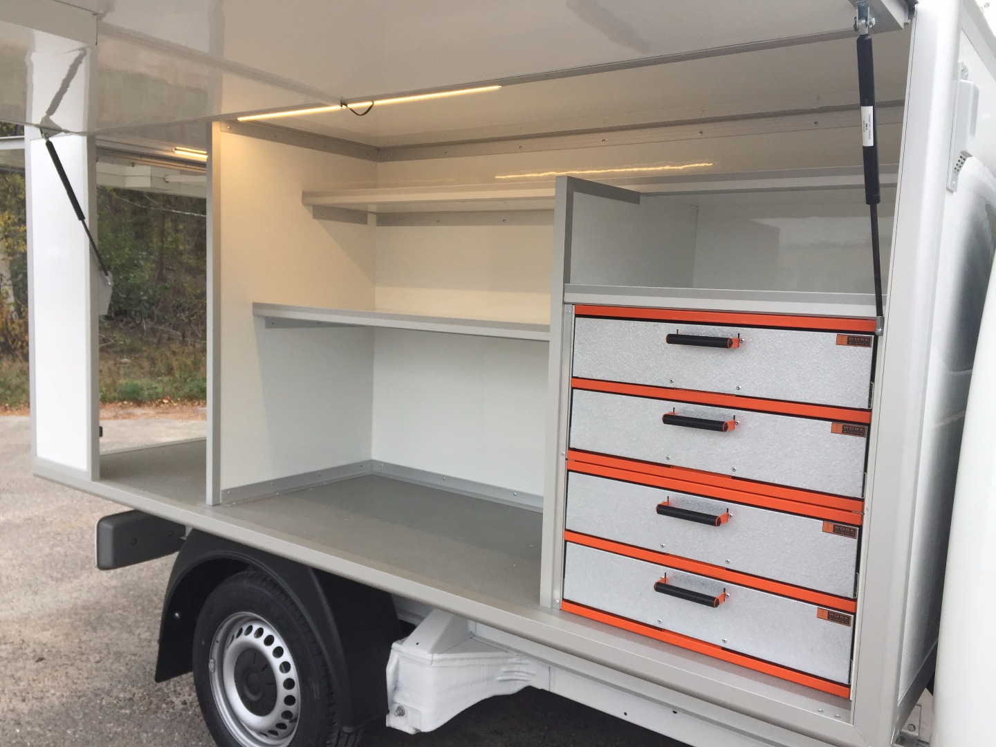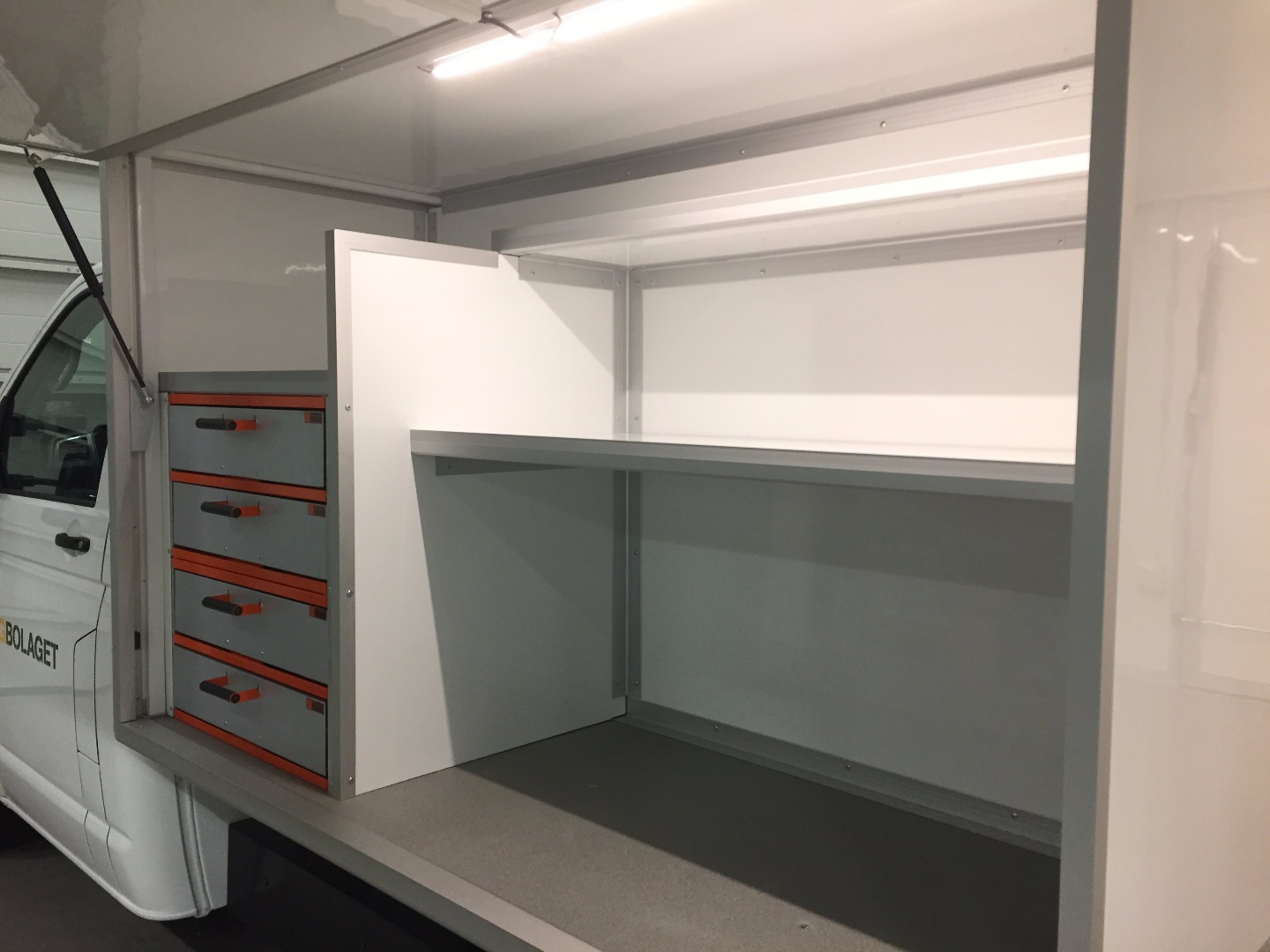 | Utrustning: | Kåpa på flak med inredning och hyllor för att passa en hantverkare |