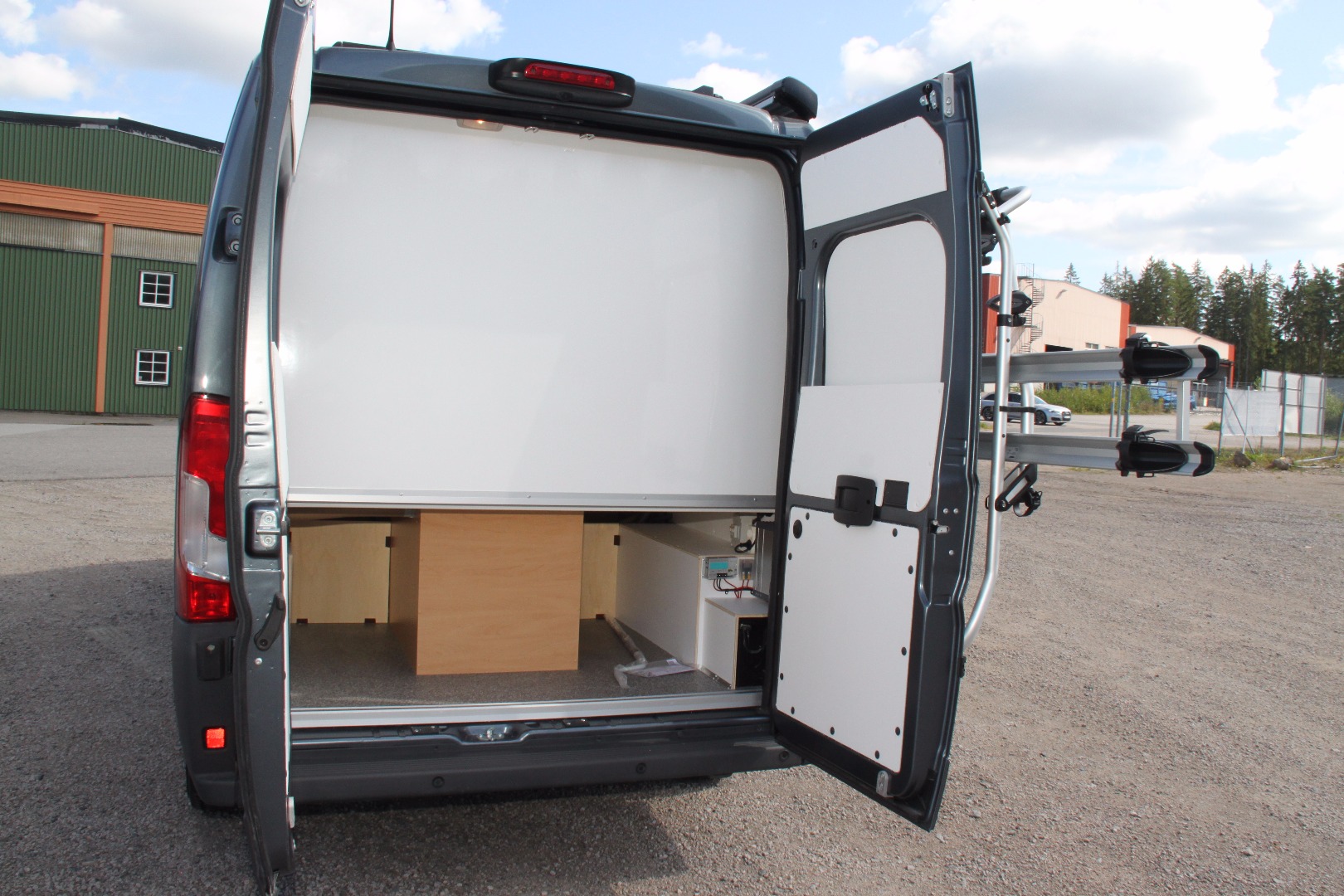 Stor Scania byggd med fyra separata stora sängar plats för den stora familjen och deras crosscycklar