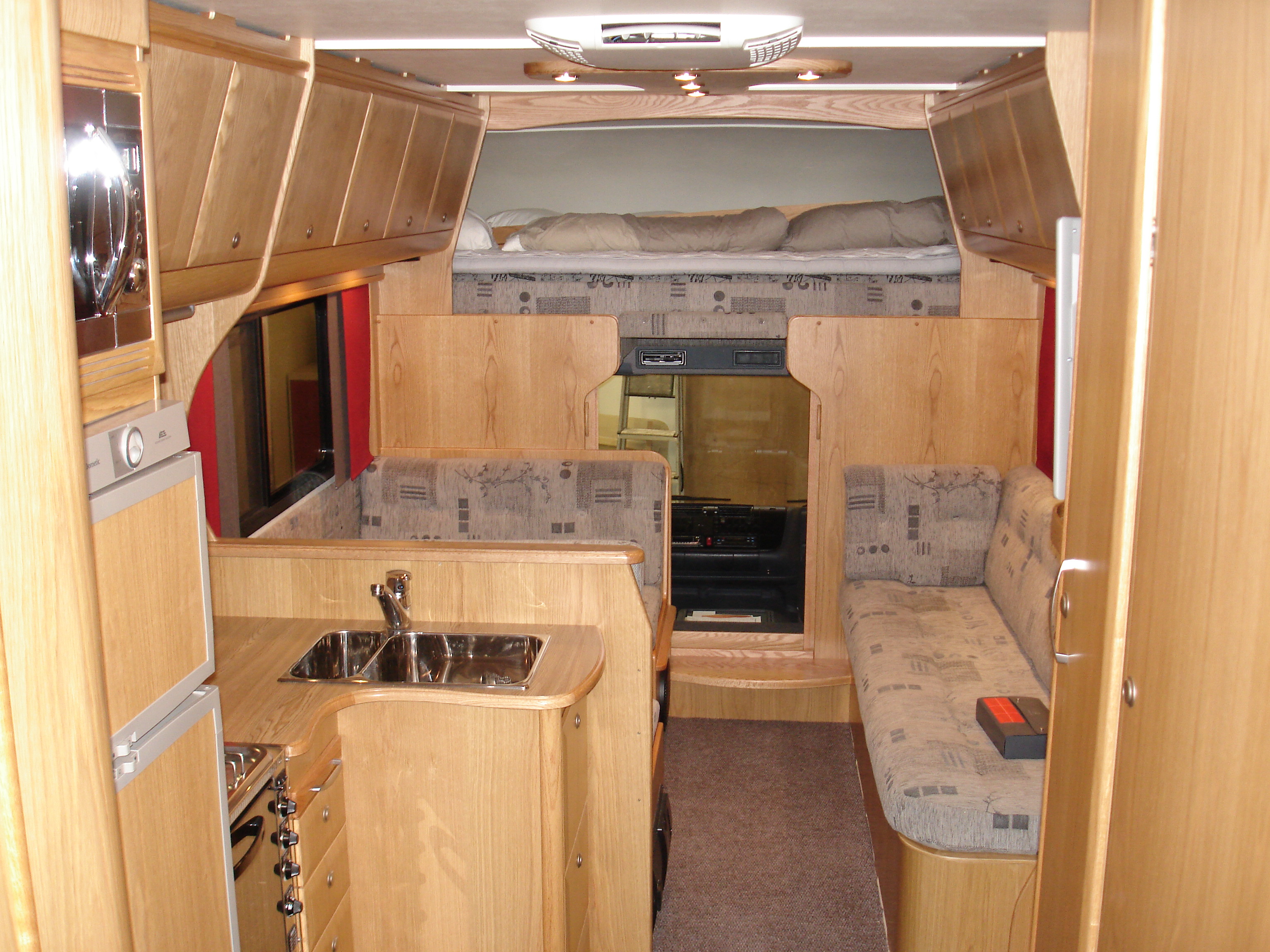 Stor Scania byggd med fyra separata stora sängar plats för den stora familjen och deras crosscycklar