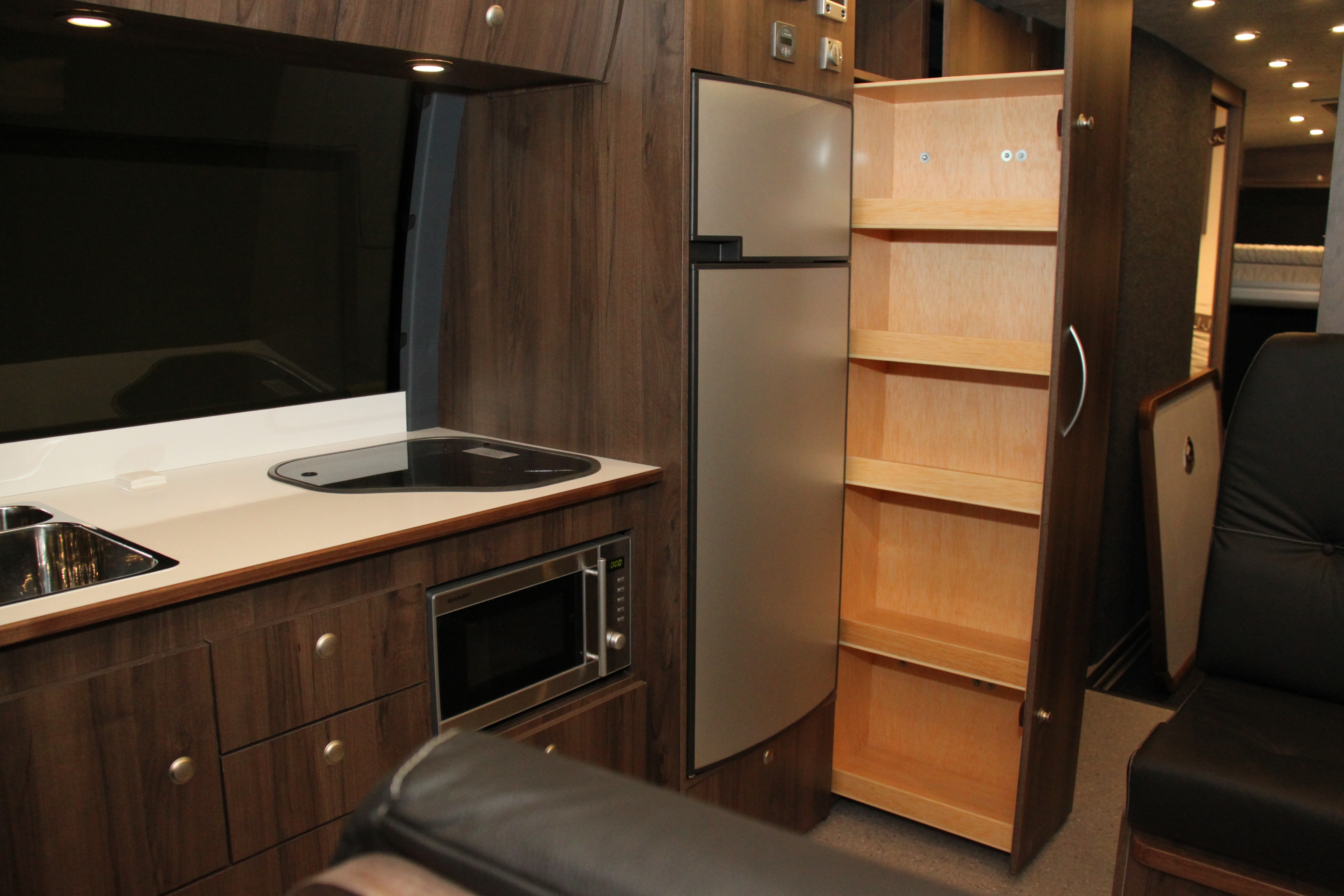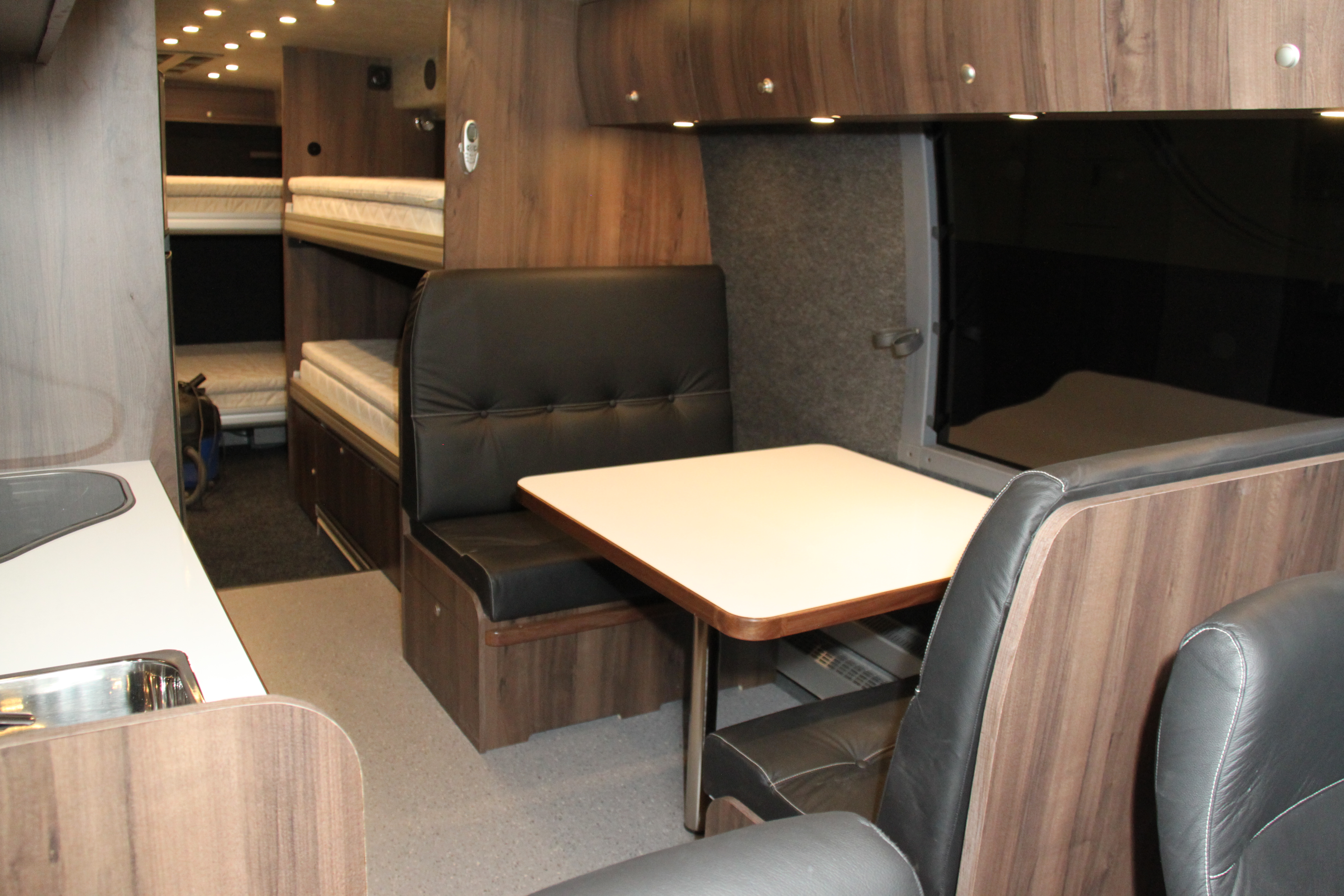 Helintegrerad husbil med fyra separata snurrstolar